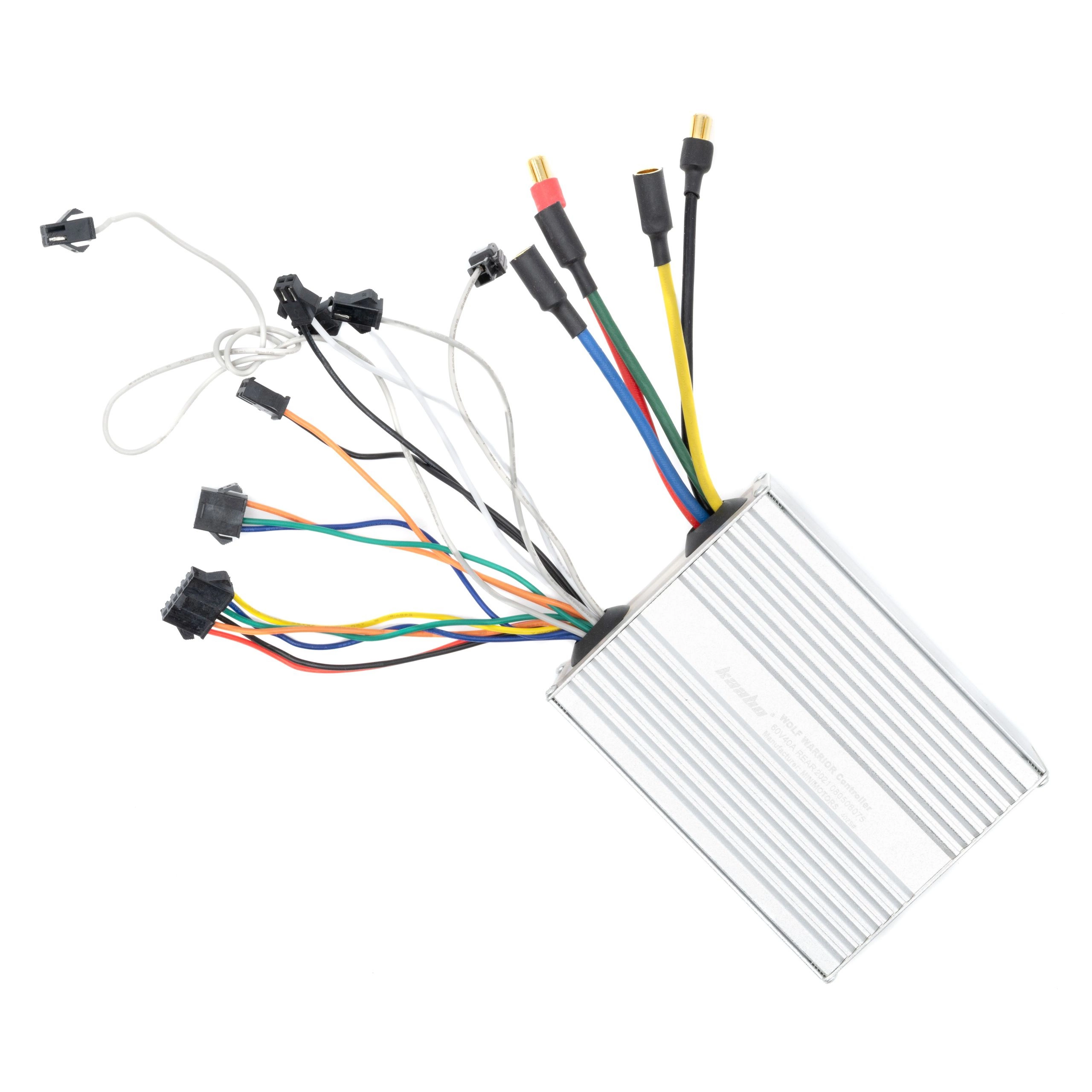 The Minimotors controller 60V 40A for Kaabo Wolf Warrior 11 electric scooters is a high-performance electronic component. This advanced part manages the power system of the scooter, enhances its performance and ensures a superior riding experience.