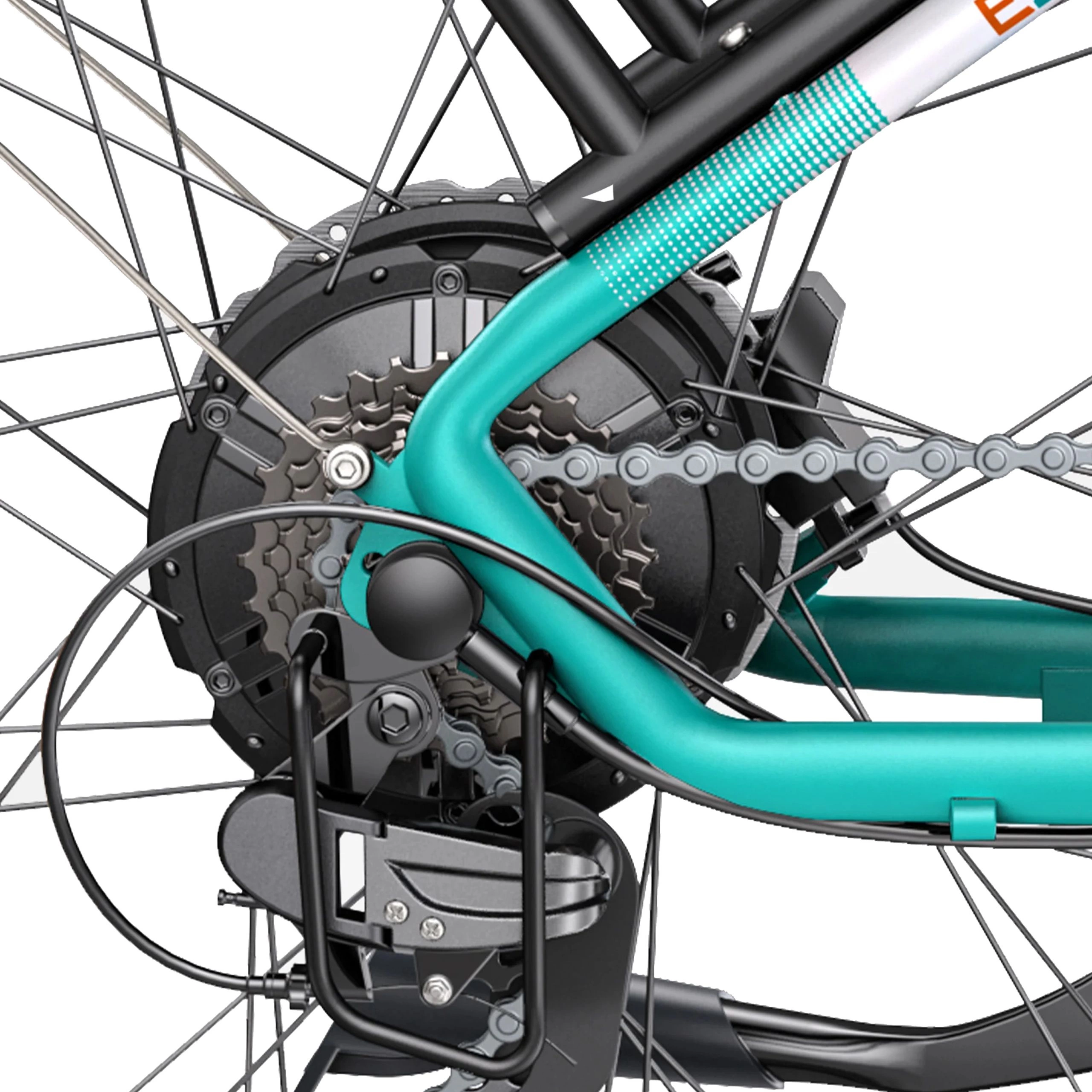 The ENGWE E26 is constructed from 6061 aluminium alloy. It’s lightweight and durable, weighing 76.1 lbs (34.5 kg). This design makes the bike easier to handle while providing a strong frame that supports up to 330 lbs (150 kg). The bike is suitable for riders between 5'6” to 6'6” (167 cm and 198 cm) tall.