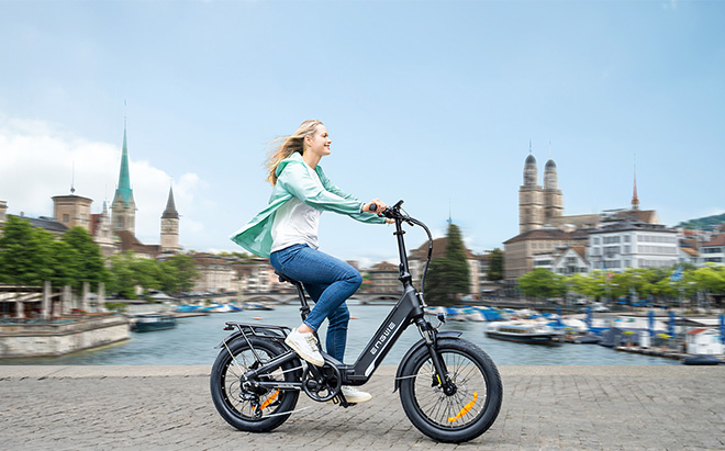 The wide, padded saddle of this electric bike distributes pressure evenly for comfortable riding over extended periods. The 10-level adjustable seat post accommodates riders from 5'1” to 6'3” (155 cm to 190 cm) tall. At the same time, the wide 680 mm handlebar reduces back strain during longer journeys.