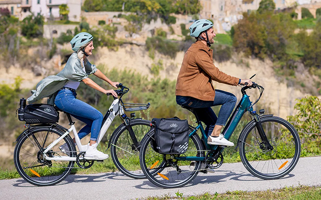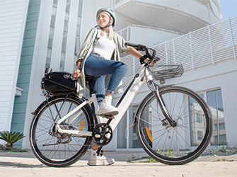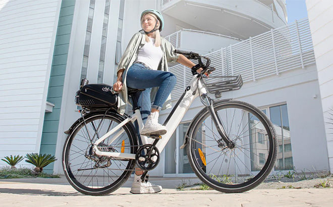 Step-through frame, adjustable components, and included rear rack make this electric bike comfortable and useful for everyday tasks.