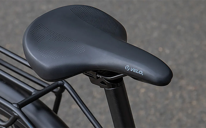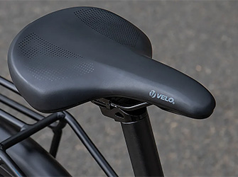 The VELO vacuum full-fit saddle supports your sit bones during longer rides, while the adjustable seat post accommodates riders from 5'1” to 6'5” (155-195 cm).