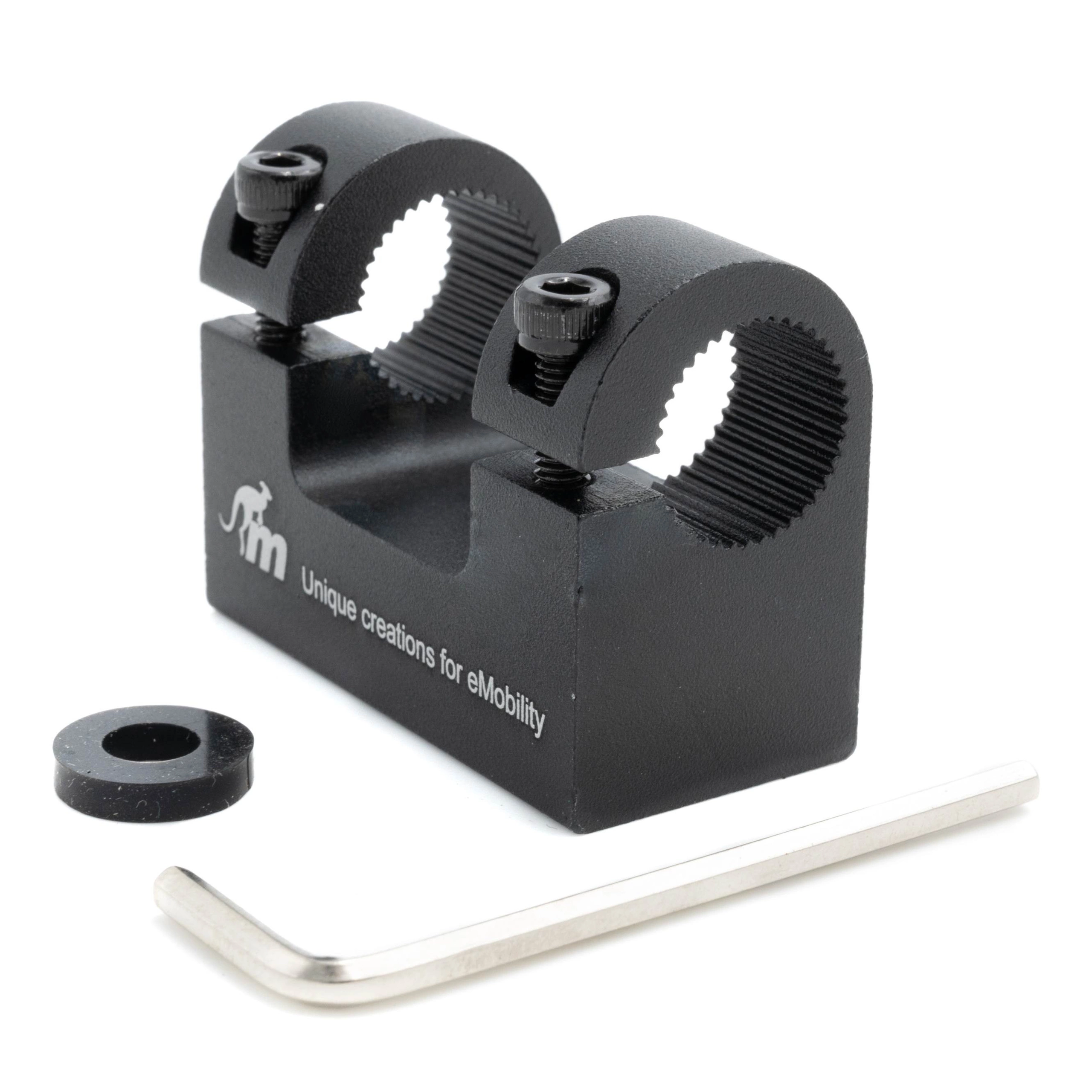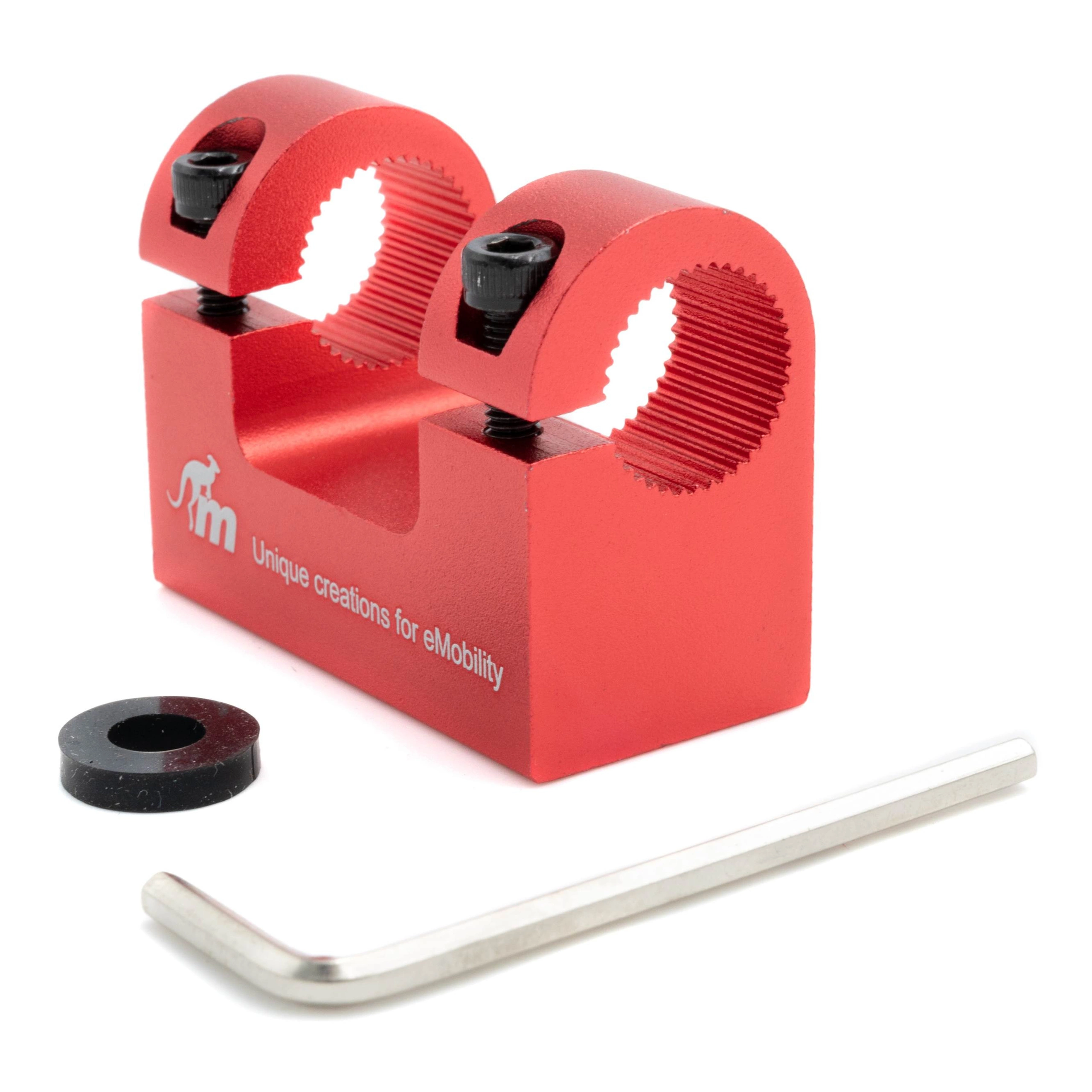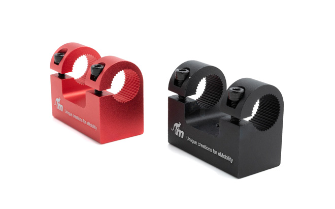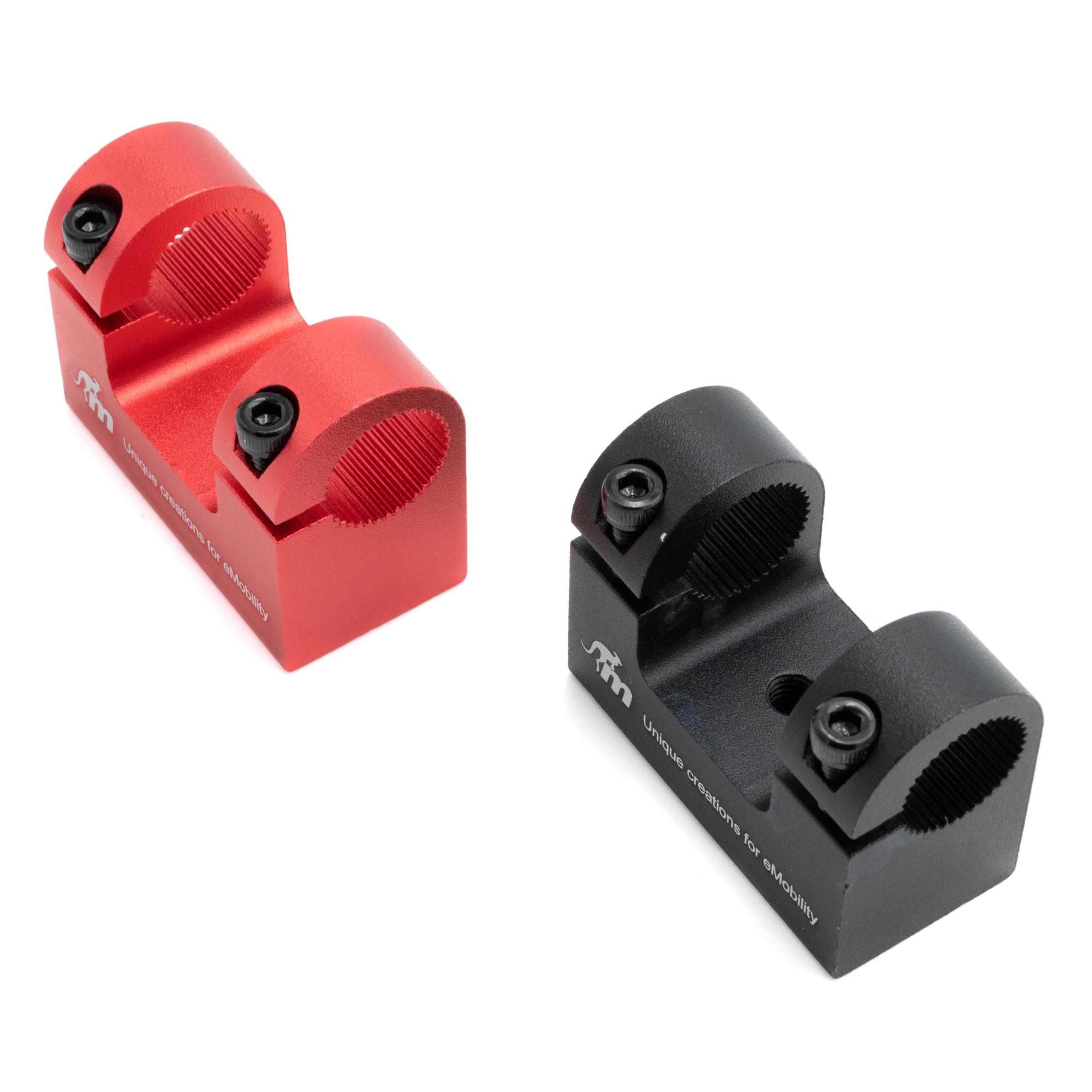 The mudguard support is made from aluminium. It’s much more durable than a 3D-printed part. Thanks to its stylish design, it blends in, looking like an original element of your scooter. The 2 colour versions—black and red—let you play with your scooter look.