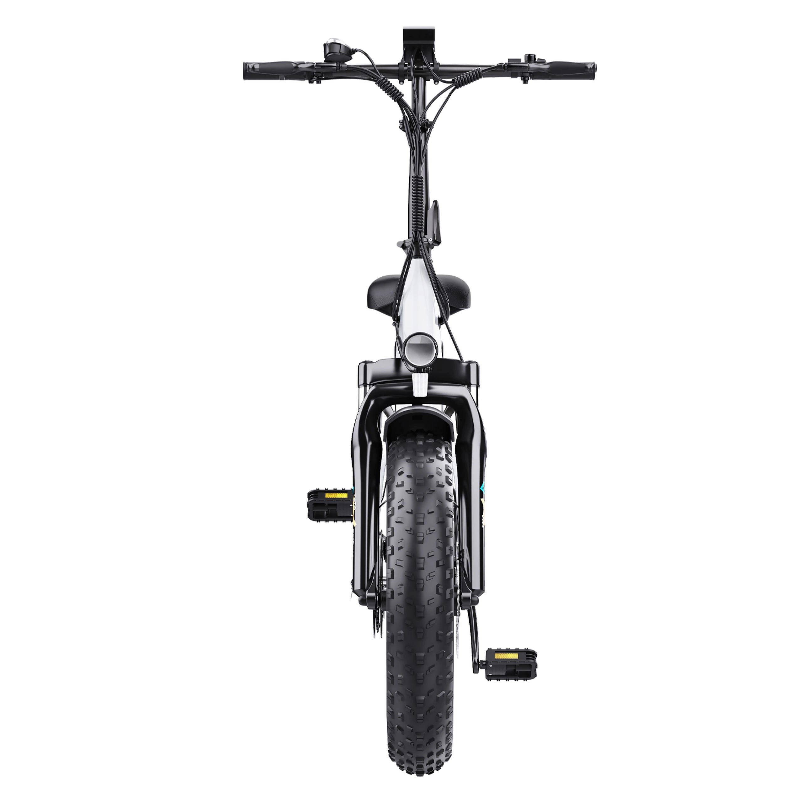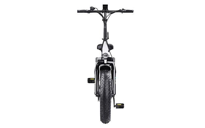 The 20” × 4.0” wide tyres provide better grip on loose surfaces and absorb small bumps for a more comfortable ride on rough roads or light trails.