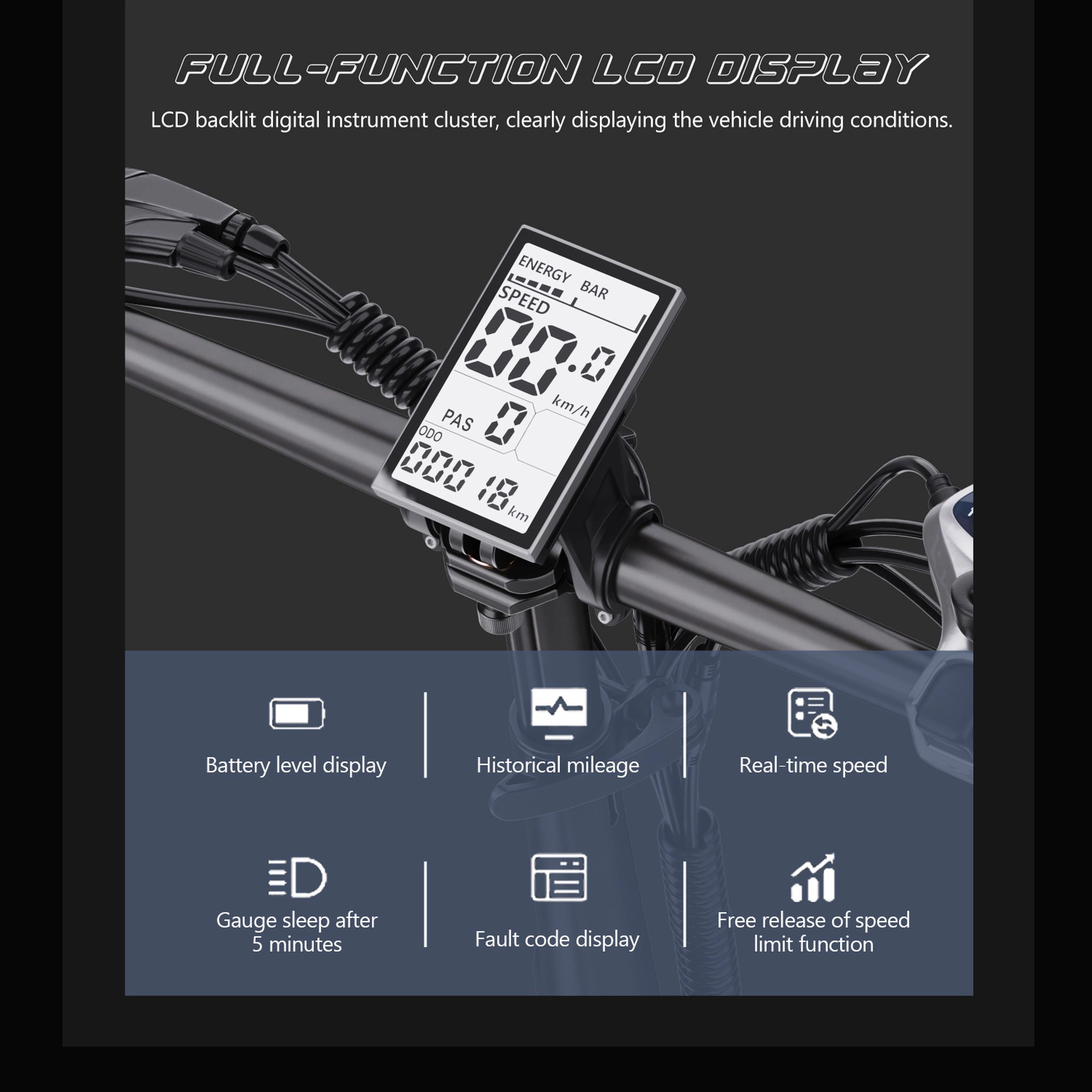 The 20” × 4.0” wide tyres offer excellent traction and shock absorption, providing a stable and comfortable ride on rough roads, dirt paths, and loose terrain.