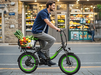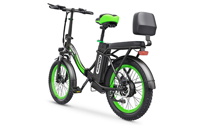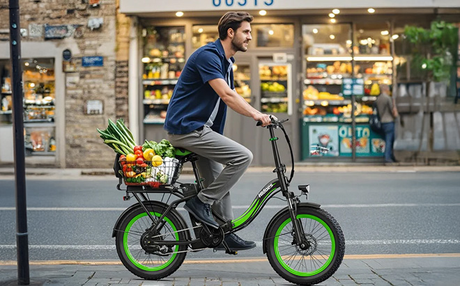 While still heavy compared to a regular bicycle, the folded C1 is much easier to lift into a car boot or carry up a few stairs than a non-folding e-bike. The included rear rack provides a platform for carrying bags or packages if you want to use it for commuting.