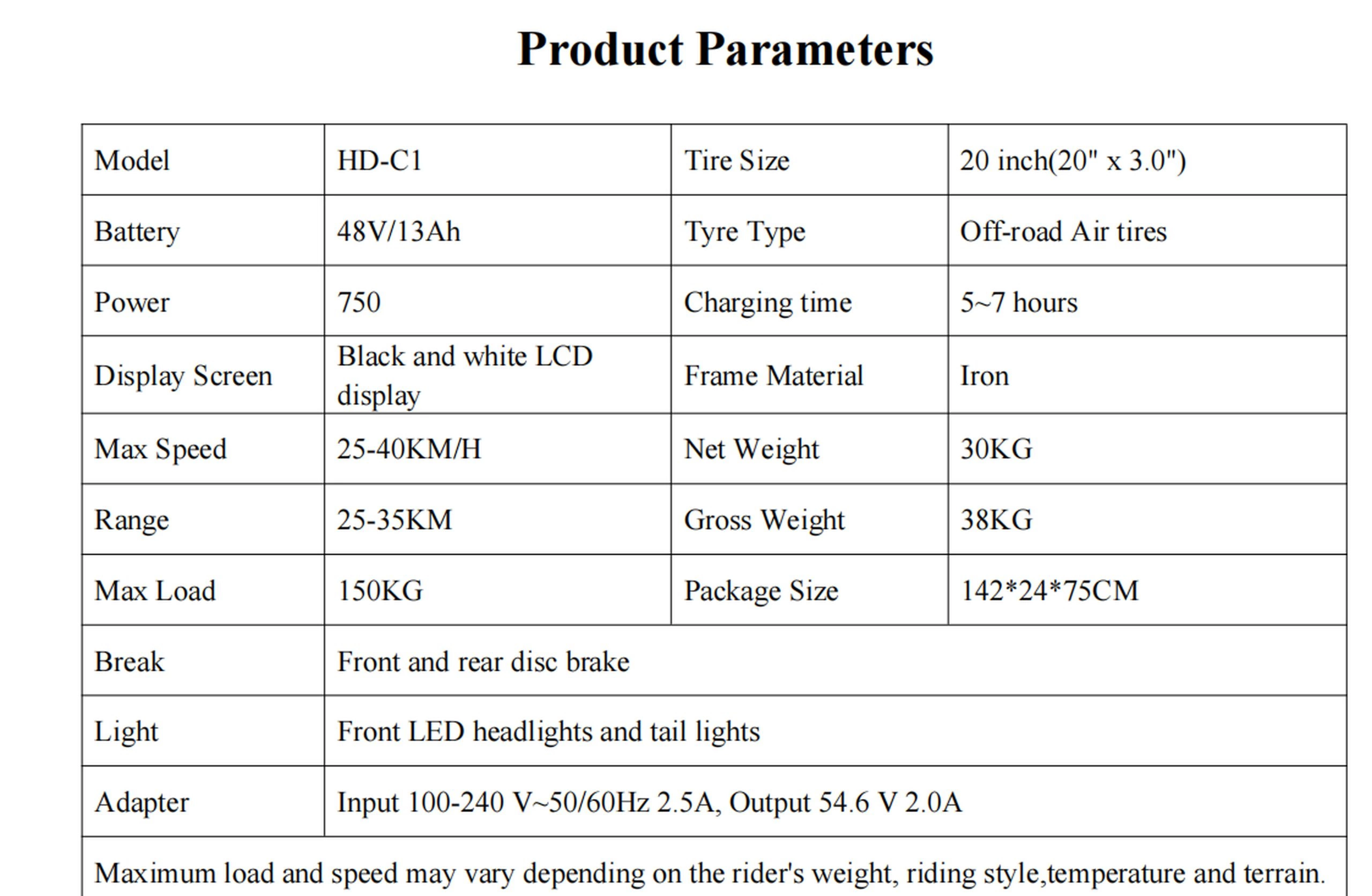 The Hidoes C1 electric bike has a 48V 13Ah lithium battery that provides a good range for most daily needs. Depending on rider weight, terrain, and how much you pedal, you can travel up to 37 mi (60 km) using pedal assist, or about 22 miles (35 km) if you rely mostly on the throttle.