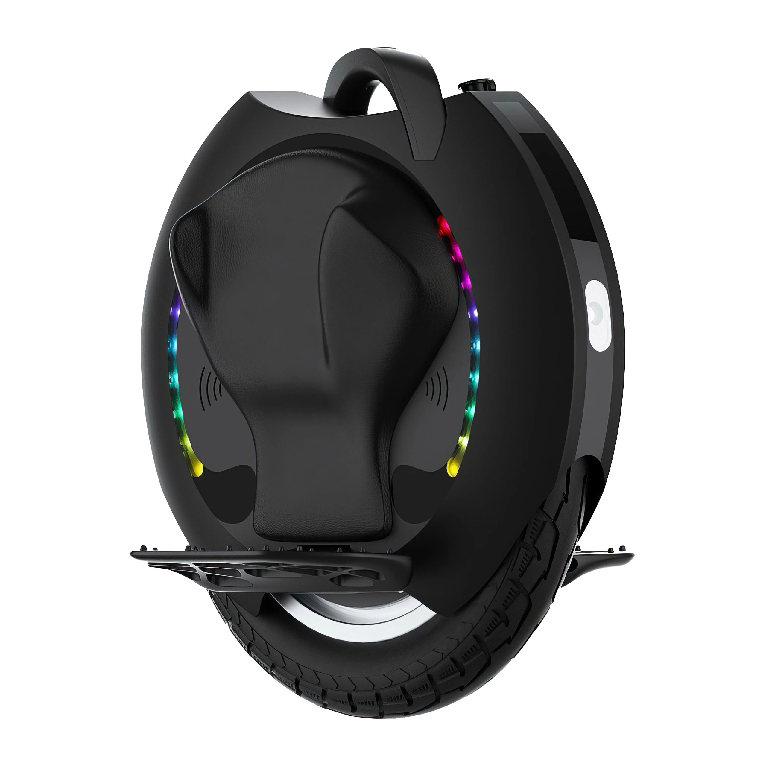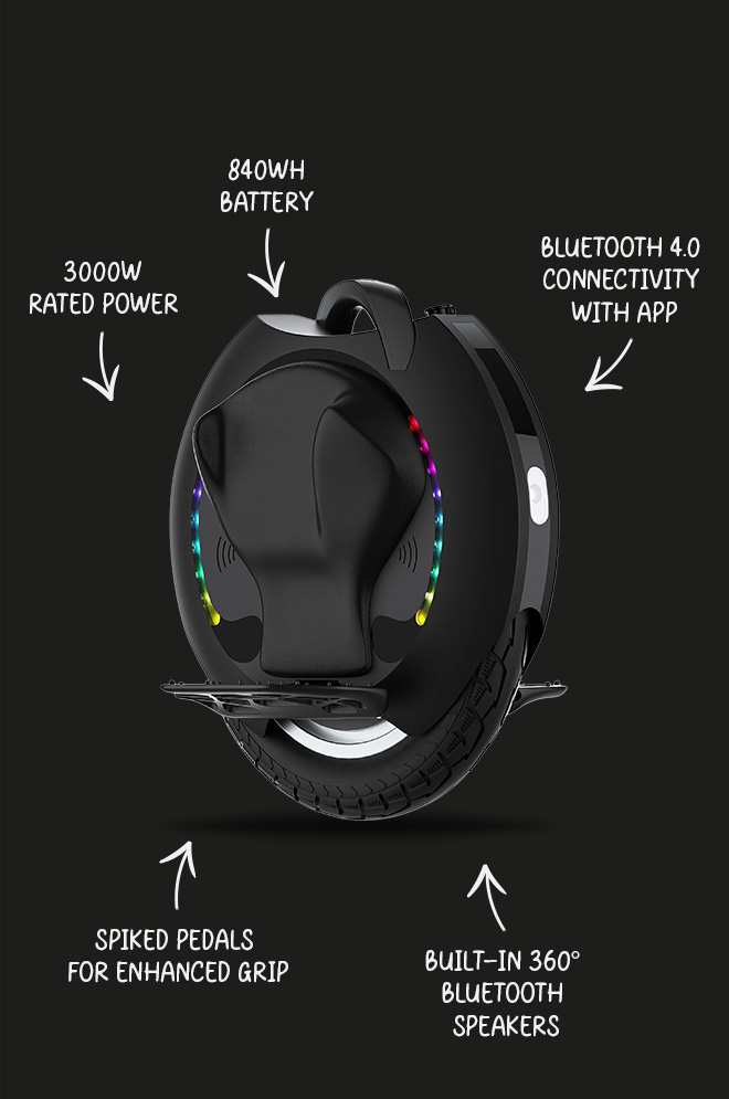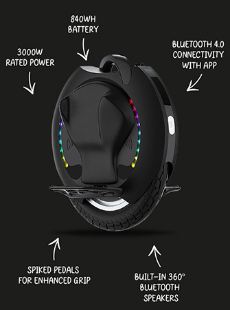 The unicycle is available in classic white or black. The ergonomic power pad improves riding comfort while providing better control during acceleration and deceleration.