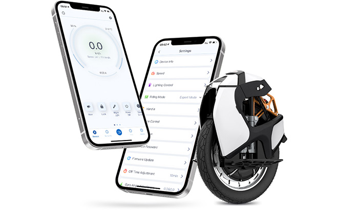 Connect your electric unicycle to the KingSong App via Bluetooth to check detailed information like vehicle status, battery metrics, mileage data, and control various features. Lock the motor, upgrade firmware, and further personalise your riding experience.