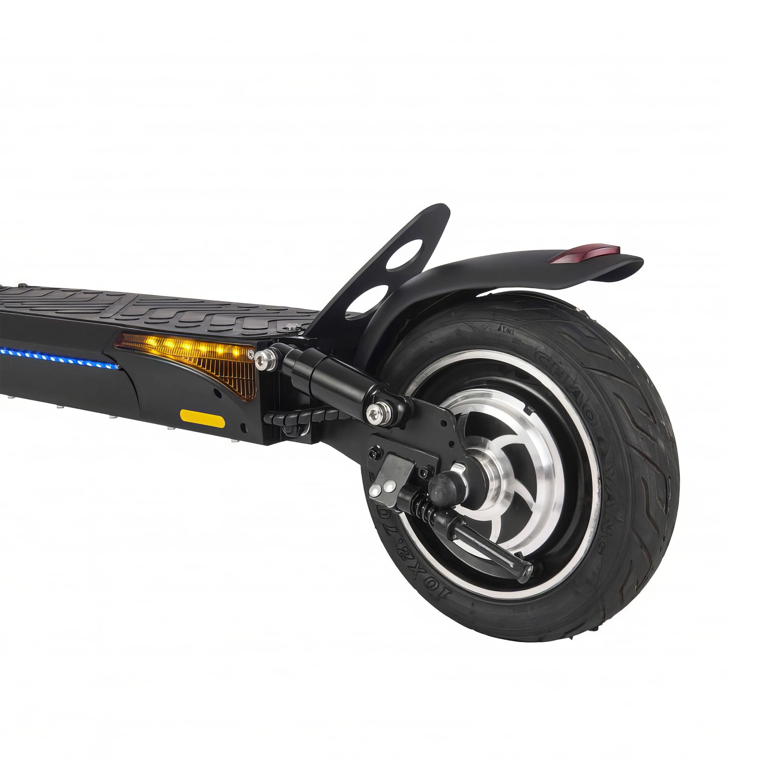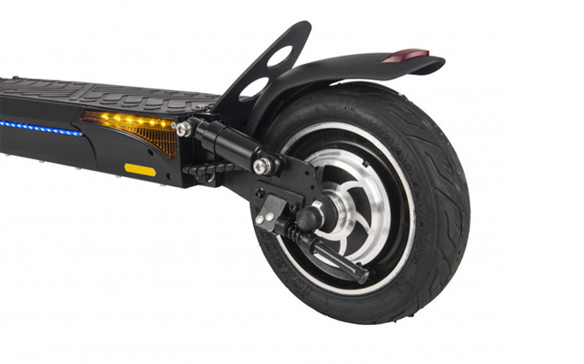 Advanced suspension system and large 10-inch tyres provide superior riding comfort by absorbing shocks from uneven surfaces. This feature also prolongs the lifespan of vital components like the battery, motor and controller.
