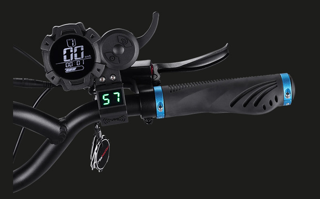 The Tiger 9 Pro features a high-capacity 52V 20Ah lithium-ion battery. It delivers an impressive 34 mi (55 km) range in single motor or 25 mi (40 km) when using both motors.