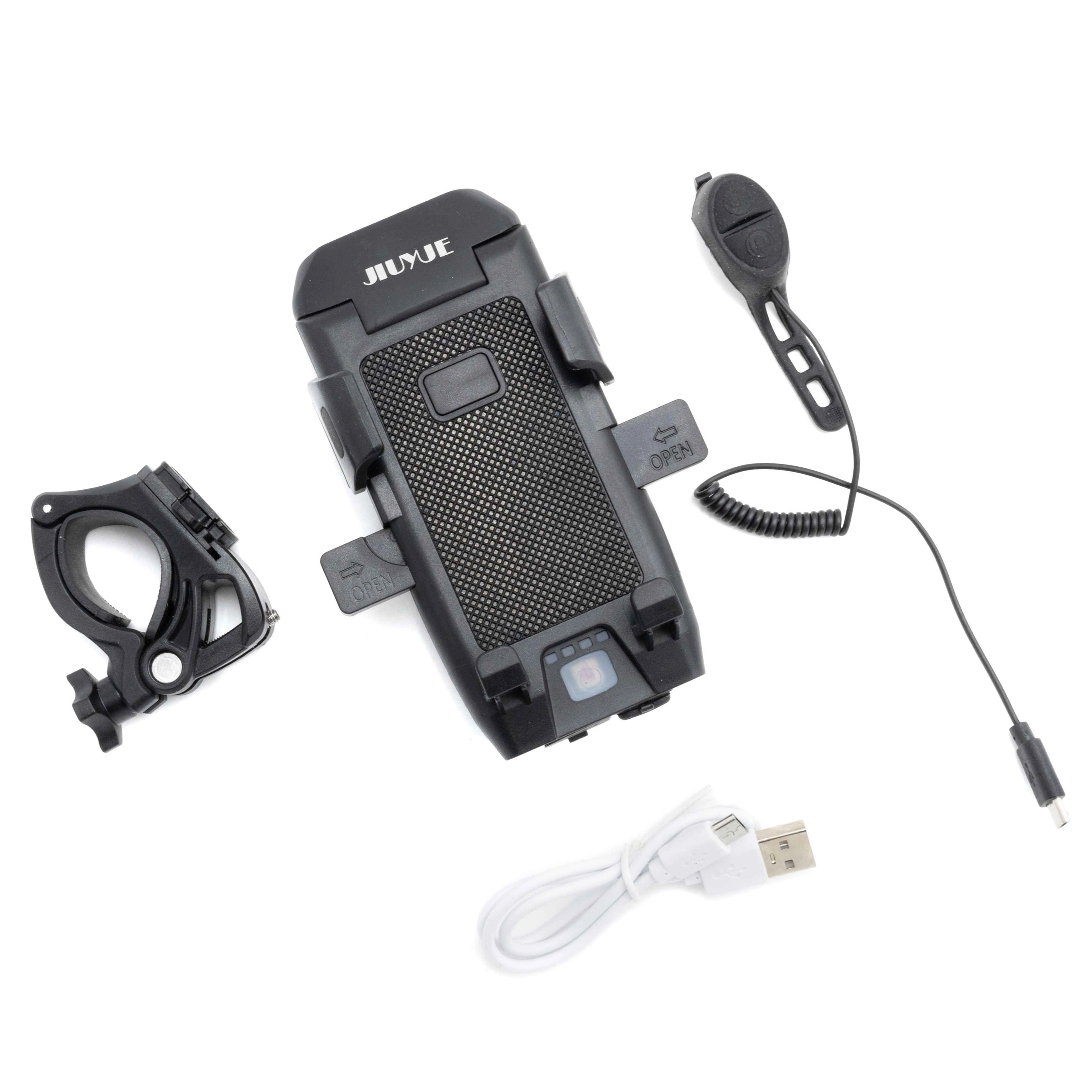 Never run out of the battery again. This scooter phone holder has a built-in power bank that allows you to charge your device while riding. Additionally, you can use LED lights to improve your visibility.