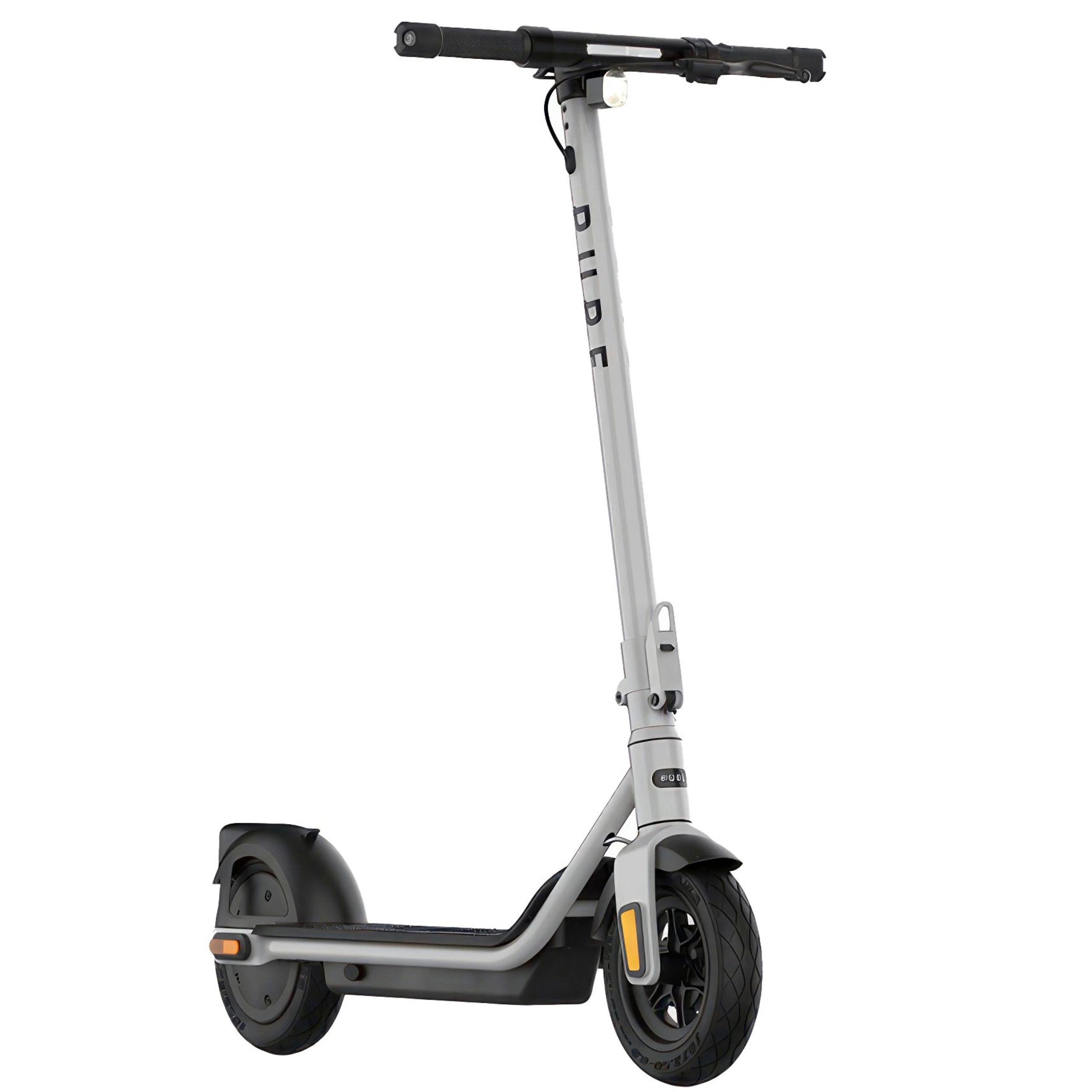 To help you see and be seen, the scooter has bright lights all around. There's a strong front light to light up the road ahead, a brake light at the back to warn people when you're slowing down, and blinkers on the handlebars so you can signal turns. The scooter also has shiny panels on the front and back that reflect light, making you more visible to others when it's dark out.