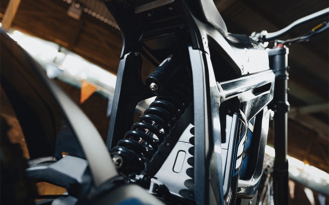The Talaria STING R L1E ROAD LEGAL means business with its telescopic front forks and rear mono shock suspension. Both ends are fully adjustable, letting you dial in the perfect setup for your riding style. The frame is forged under 6000 tons of pressure, making it incredibly strong.